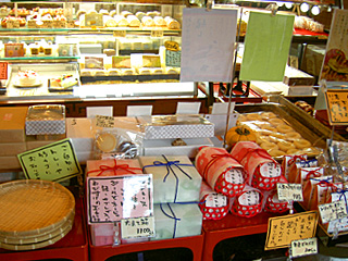 南仲通り商店街で3 代続く老舗の創作菓子店「松月堂わびすけ」。