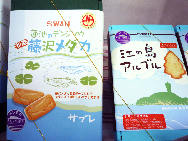 「藤沢メダカサブレー(1枚55円)」等、61年と長い歴史のある老舗のスワン洋菓子店さんの味を楽しんで頂きたいと思います。