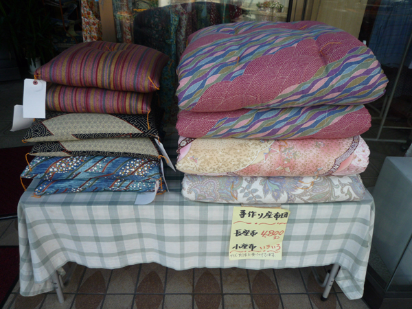 お勧めの商品をお伺いした所、専門の職人が手作業で綿100%で作るつくる寝具、座布団や枕です。 また、反物の端切れを側地に使用した綿100%の「小座布」は、ふんわりしていてとても座り心地がいいそうです。 綿ワタ100%の敷き布団は、ほどよい弾力があり、吸水性が高くて日本の気候、風土に最も適した寝具素材との事で 健康にやさしい「ふとん」だそうです。 いい綿ワタを使用すると、30年は利用でき、赤ちゃん用に使用していた敷き布団も側地を変えて、綿ワタを追加すれば ジュニアサイズに再利用する事もできるので、費用も抑え、買い替えすることなく長く使用することができるそうです。