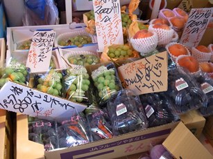 あまりスーパーにはおいてない、皮ごと食べられ、種がないブドウの「ナガノ・パープル」や「シャイン マスカット」など果物の種類も豊富です。