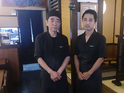 七代目桑原芳晴さんと八代目小林敦広さんにお話をお伺いしました。1810年頃、初代笹屋治兵衛が日本橋馬喰町に長崎の「南蛮煮」をもとに「鴨南ばん」を考案し、江戸後期の文化年間に江戸中の人気となりました。日本中に広がった「鴨南蛮」の起源となった味です。