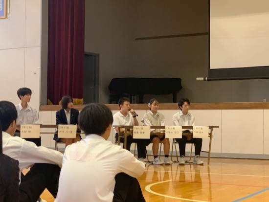 代表生徒(各学年3名、計6名)と前田氏によるパネルディスカッションを行いました。また、代表生徒以外の生徒や先生からも基調講演の感想や質問があり、講演をさらに深堀りしました。