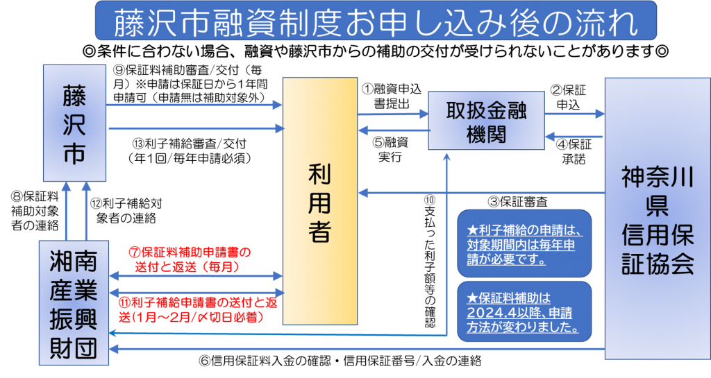 - 申込書は藤沢市の融資窓口(公益財団法人湘南産業振興財団)と、取扱金融機関に常備しています。
